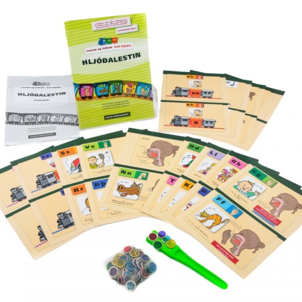 Í svokölluðum skólapakka fylgja Hljóðalestinni verkefnabók og stórar myndir af talfærum í hliðarstöðu með öllum þeim hljóðum sem unnið er með í bókinni; alls 32 myndir. Talfæramyndunum má því stilla upp til hliðar þegar unnið er með hvert hljóðapar. Þá fylgir segulsproti og 100 segulpeningar en það er kjörið að láta nemendur setja ofan á hverja mynd í bókinni um leið og þeir segja orðið og ríma. Þegar barnið er búið að segja orðin og setja ofan á allar myndir á hverri bls. má hreinsa af með segulsprotanum! Skólapakki *Hljóðalestin og verkefnabók *Talfæramyndir *Segulsproti og 100 segulpeningar TILBOÐ = 15.500 sendingarkostnaður bætist við