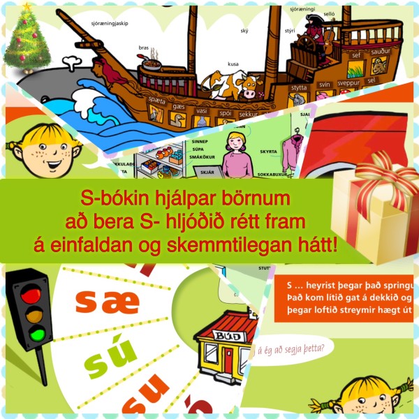 S bókin er sjálfstætt framhald af Lærum og leikum með hljóðin, undirbúningur fyrir hljóðmyndun og tal. Bókin er m.a. ætluð foreldrum, öfum og ömmum sem vilja undirbúa og vinna markvisst með S hljóðið eftir leiðbeiningum höfundar sem talmeinafræðings með áratuga reynslu af þjálfun barna með frávik í hljóðmyndun og hljóðkerfi. Samhliða er unnið með þætti í hljóðkerfisvitund.