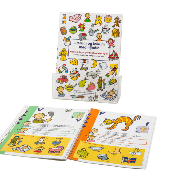Lærum og leikum með hljóðin er ætluð ungum börnum sem eru að byrja hljóðmyndun og öðrum þeim sem eru að læra íslensku málhljóðin. Við köllum hana gjarna grunnbókina því í þessari bók eru öll hljóð í íslensku kynnt með aðstoð Mána og Maju. Þau fylgja þeim sem skoðar og les, út alla bókina. Röð samhljóða í bókinni fylgir sömu röð og íslensk börn tileinka sér hljóðin í máltökunni. Hér er því ekki um eiginlega stafrófsröð að ræða. Af öryggi geta foreldrar byrjað á fyrstu bls. í bókinni og fylgt efninu áfram því smám saman eru hljóð sem erfiðara er að segja, kynnt í hljóðaleik. Bókina má hugsa sér sem leiðarvísi um hvernig má á einfaldan hátt laða fram rétt hljóð í hljóðaleik, æfa hljóðatengingar sem við köllum bullorð, og æfa ný orð með réttu hljóði. Við bætum í orðaforða ungra barna og strax er hugað að undirbúningi lestrarferilsins, sem hefst löngu áður en barnið fer að lesa staf fyrir staf. Hvert samhljóð á sér fyrirmynd eða tákn fyrir hljóðið. Í spætunni sem goggar í tréð heyrist d…d…dadd.., um leið og hún goggar, reiða kisan segir f…f…fh… þegar togað er í rófuna hennar o.s.frv.