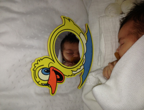 með 9 cm gæða hringspegli. Segull að aftan svo unnt er að festa spegilinn á ísskáp, skjalaskáp eða þar sem við á. gjöf handa ungum börnum því spegillinn er óbrjótanlegur og öll börn hafa gaman af því að horfa á sig í spegli. Upplagt í vögguna hjá ungum börnum.