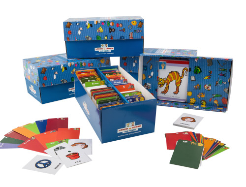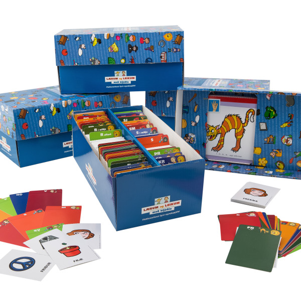 Flokkunarkassinn er sérhannaður til að geyma hið fjölbreytta myndefni úr öllum þremur framburðaröskjunum, á einum stað. Setjið allar litlu myndirnar í botninn og greinið að með millispjöldunum sem eru merktar með táknmyndunum úr efninu. Í lokið komast allar stóru táknmyndirnar sem gefa fyrirmynd fyrir hvert og eitt hljóð. Góð lausn til að geyma myndirnar allar á einum stað. Tómu framburðaröskjurnar má svo nota til að geyma verkefni sem hægt er að búa til með myndunum eða límmiðunum. Þær eru eigulegar og vandaðar með skemmtilegum myndum.